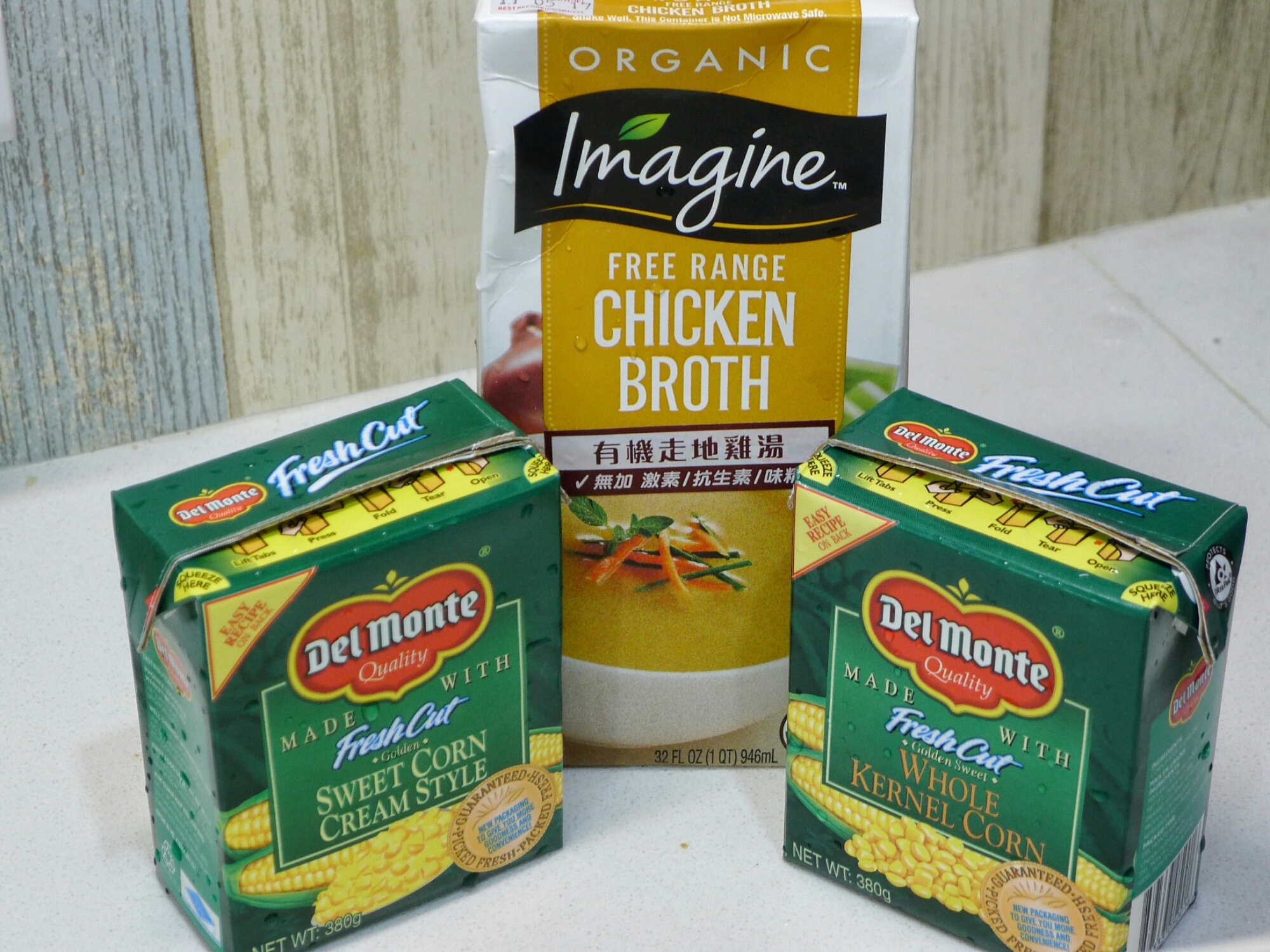 - 粟米粒隔去水份,連同粟米蓉及雞湯放到鍋內以中小火煮滾,其間不停攪拌以免黐底;