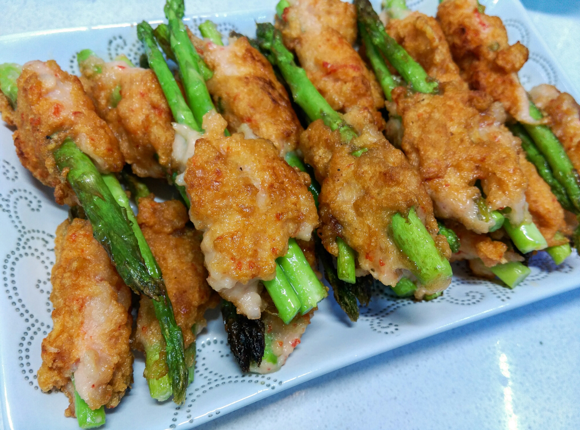 中式, 食譜Simply Taste《懶@有營食譜》-香脆百花蘆筍卷Published : 12/10/201629/12/2016 <份量>3-4人 <食材>蝦肉-300克迷你蘆筍-1包 <醃料>鹽-1/2茶匙蛋白-2茶匙米酒-1茶匙生粉-2茶匙胡椒粉-少量 <製作步驟>先用少許鹽洗淨蝦肉,去腸及印乾,放雪櫃1-2小時把所有醃料與蝦肉放進電動攪拌機攪成蝦膠蘆筍洗淨印乾,切去尾部1/3,2-3條一起包上蝦膠以中細火半煎炸至表面金黃即成 《小秘訣》坊間一般以刀拍手攪使蝦起膠做出彈牙效果,其實利用電動攪拌機的高轉速,原理等同以手攪動蝦肉至起膠的動作,更省時方便如想蝦肉更爽彈,可加少許肥豬肉