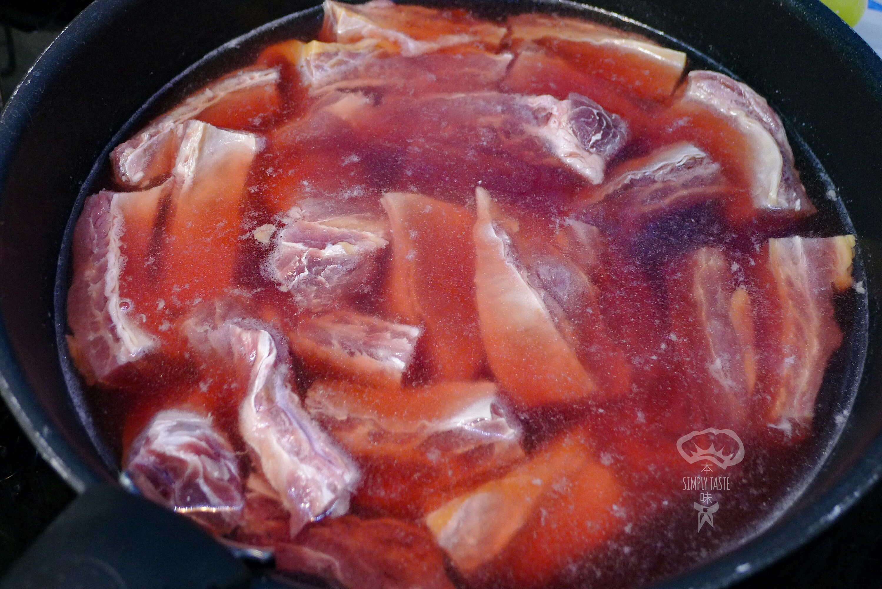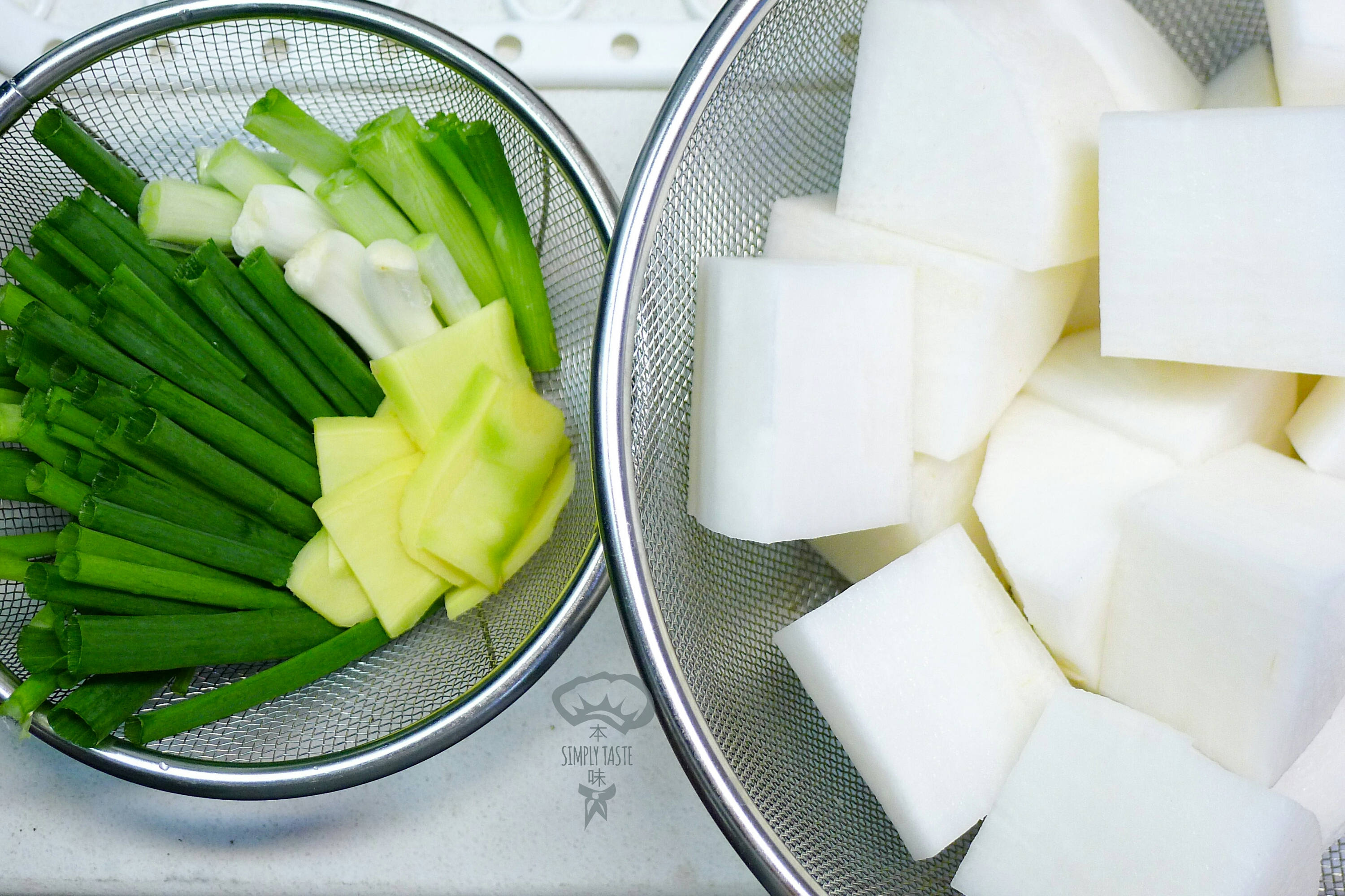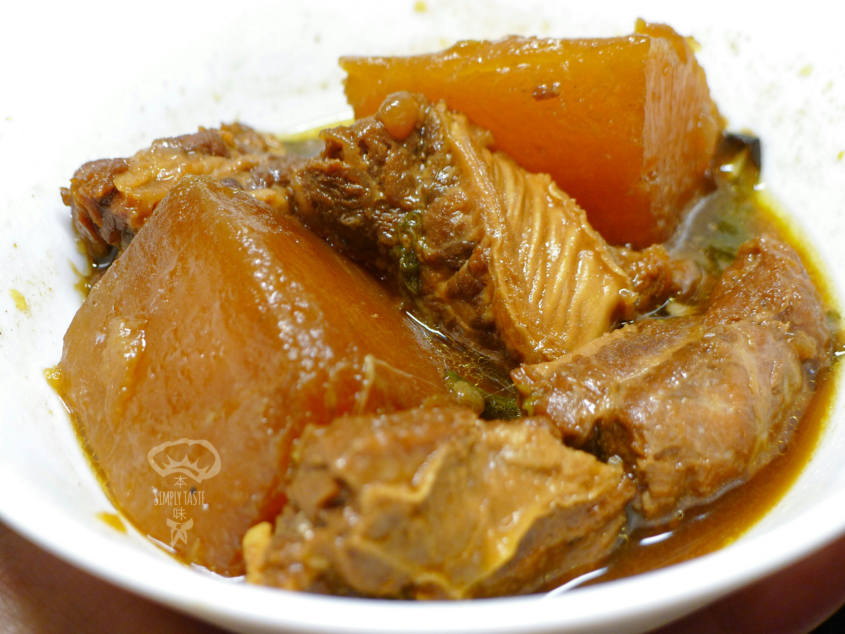 中式, 食譜Simply Taste 港式經典美味《柱侯蘿蔔炆牛腩》Published : 16/01/201816/04/2018<份量>5-6人<食材>牛腩/牛肋肉-900克(1.5斤)白蘿蔔-1200克(2斤)薑片-5-6片葱段-3棵水-1.5公升<調味料>生抽(淡醬油)-1湯匙柱侯醬-6湯匙八角-2粒 <製作步驟>牛腩及凍水一同放鍋內以小火煮滾以迫出雜質,撈起牛腩沖水洗淨備用,再將煮過牛腩的滾水用廚房紙鋪網篩過濾雜質成高湯後備用;白蘿蔔去皮切成大塊備用;高身鍋中火燒熱2湯匙油,加入薑片及蔥段爆香,再放入生抽、柱侯醬及牛腩炒勻;加入牛高湯及八角煮滾後加蓋轉最小火炆1.5小時,再加入白蘿蔔煮滾,以小火再炆1小時即可享用。💡加入牛腩及蘿蔔時要確認水位能蓋過材料,不夠可加入熱水;如想味道更濃郁,可早一天燉好放隔天享用。