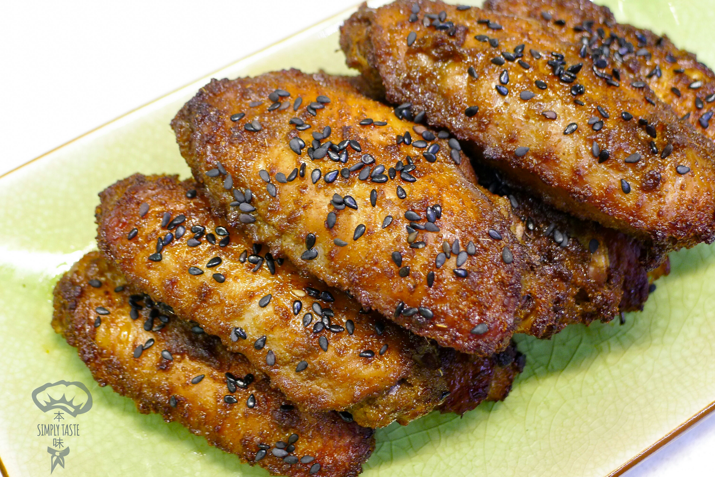 - 以200度焗約12-15分鐘(視乎雞翼大小),焗至表面香脆,出爐後最後灑上黑芝麻就完成了。