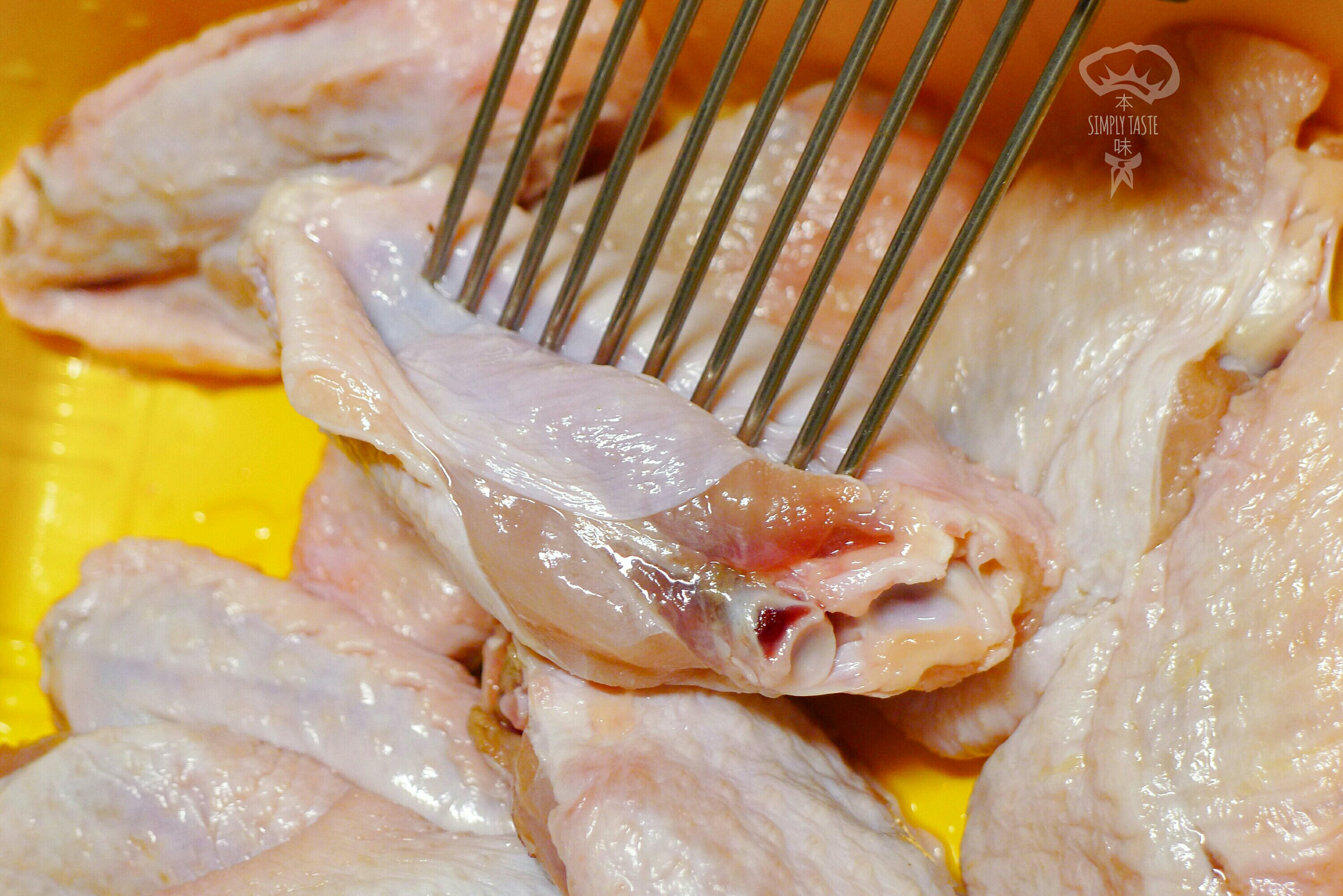 - 在雞翼上刺孔;