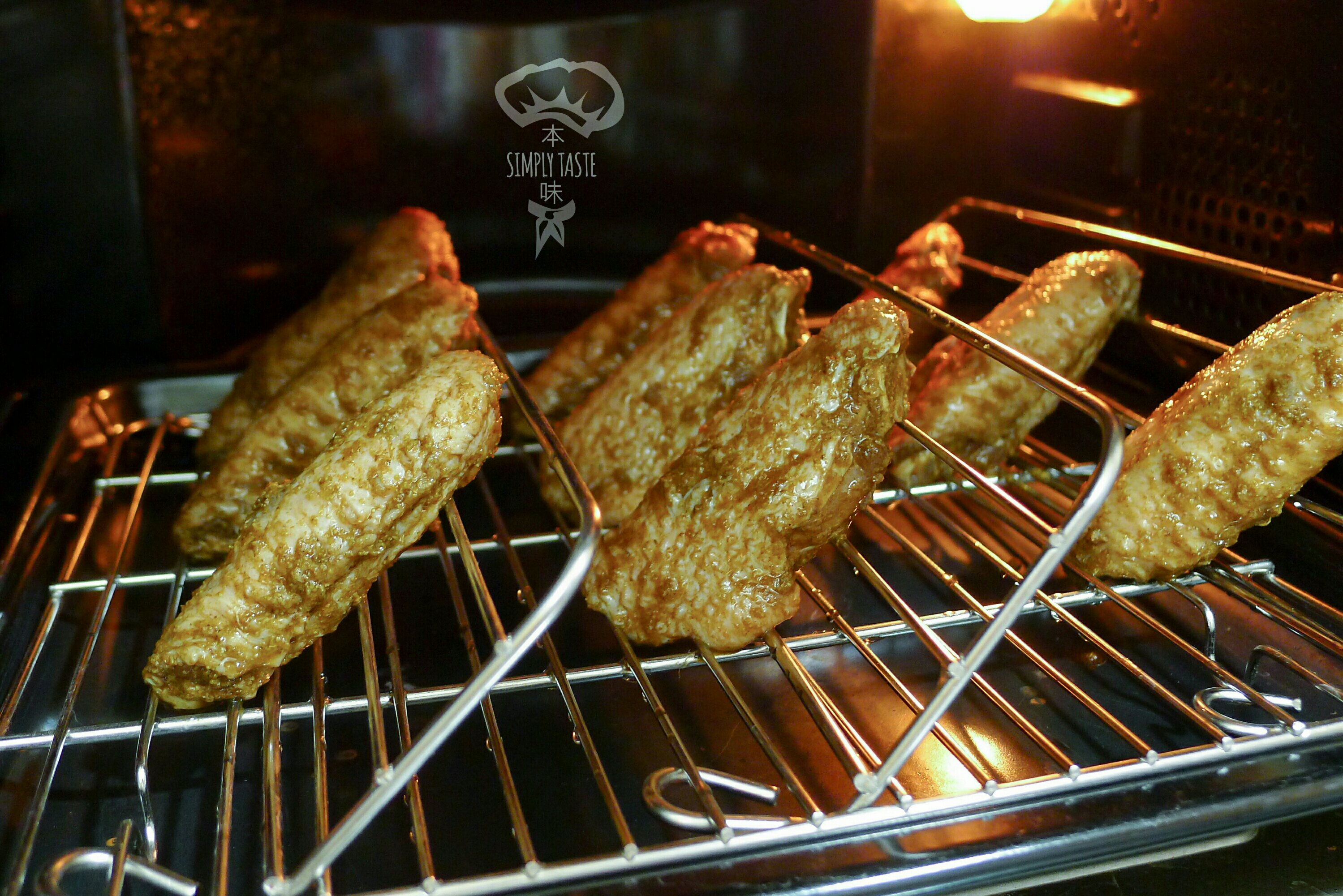 - 預熱焗爐190度10分鐘,將已醃好雞翼排好在網架上;