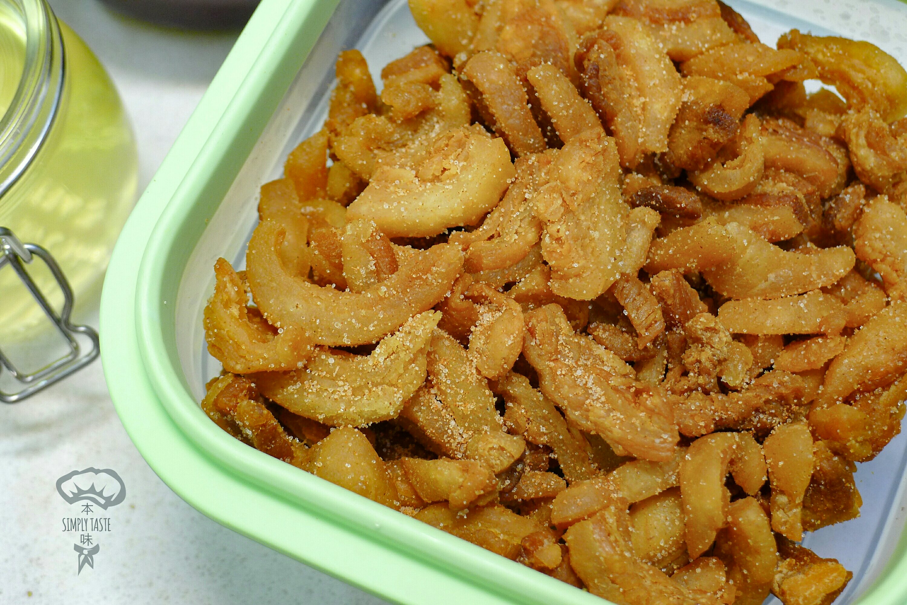 中式, 生酮Simply Taste 《低醣生酮食譜》-炸豬油/豬油渣(氣炸機一鍋搞定版)Published : 16/04/201805/10/2018<份量>約450毫升<食材>豬肥膏-875克<製作步驟>將豬肥膏洗淨瀝乾水份,切成細條狀;加入已預熱100℃氣炸機內,每15分鐘翻動一次令其受熱均勻;每半小時將底部濾出油份倒出,直至豬皮顏色轉為淡黃色便可(豬油萃取時間約為2小時);將爐溫調至200℃,把豬油渣炸20-30分鐘左右至金黃香脆便可作零嘴小食(此時濾出的豬油不宜食用)。