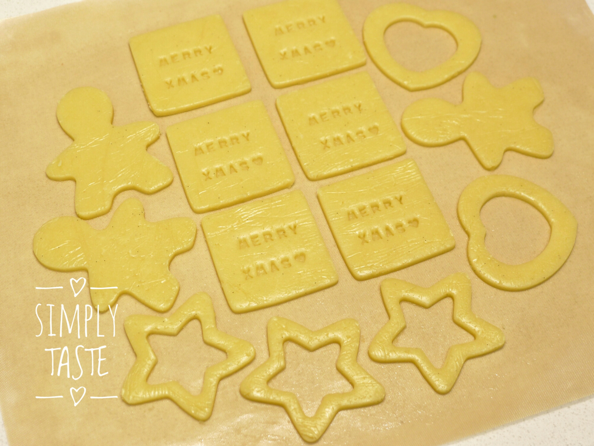 - 將雪好麵糰取出去除保鮮紙,直接放在焗盤/入爐墊上,用印模壓出所需型狀,取去周邊多餘部份留待再重覆做步驟5;